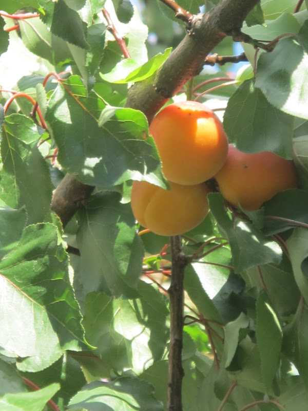 Branle-bas de combat dans la maison, comment va-ton faire pour aller les cueillir, qui va prendre le panier, aller sonner aux porte des locataires de l'immeuble : voilà les fruits de notre abricotier, goûtez c'est de la soie... Personne ne va faire ça, même pas moi, il faut une échelle, des bonnes jambes, de l'enthousiasme, de l'audace, du courage même, comment braver les éléments, un abricotier en ville qui n'appartient à personne en particulier, dans un jardin grand comme une salle de bain, clôturé à double tour...